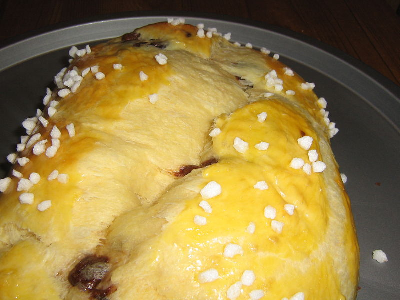 badigeonnez la de jaune d'œuf, puis saupoudrez de sucre en grains,