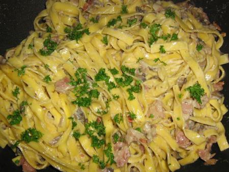 Un p'tit plat de pâtes pas vraiment light, mais rapide à faire et bon à manger !!