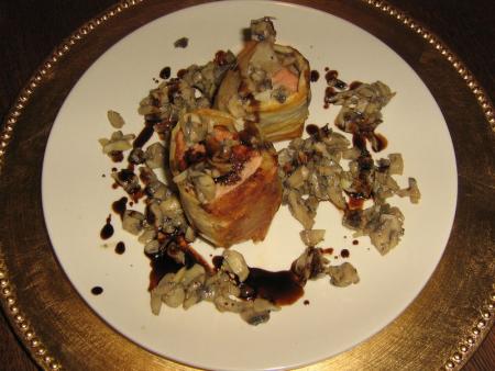 - Dans une casserole faites réduite le balsamique de moitié, hors du feu ajoutez le beurre, puis maintenez au chaud sans faire bouillir.