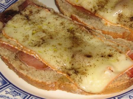 jambon sur sa tranche de pain, on ajoute deux tranches de fromage, on